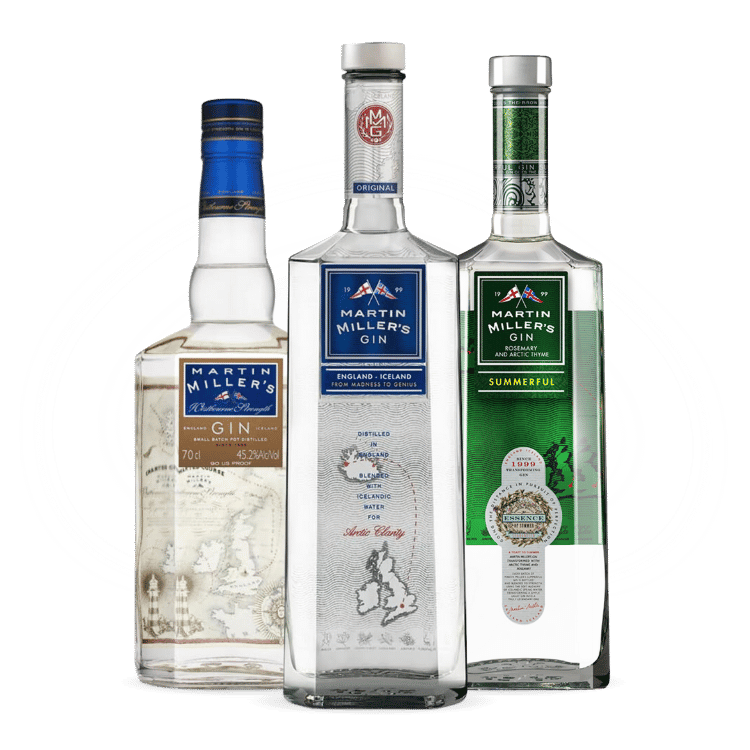 Martin Miller’s Gin is a super-premium British gin born from a relentless pursuit of purity, crafted through a distinctive double pot-still distillation that separately refines juniper and citrus botanicals for exceptional balance. After distillation in England, the spirit is blended with some of the purest Icelandic spring water on earth, yielding an elegant, smooth, citrus-bright profile celebrated by bartenders worldwide. Launched in 1999, it helped spark the modern gin renaissance with unmatched quality credentials.