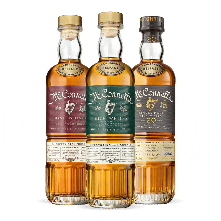 McConnell’s Irish Whisky is the triumphant revival of one of Belfast’s oldest whiskey names, first established in 1776 and reborn with a dedication to heritage. Blended from select malt and grain whiskies and matured in ex-bourbon oak barrels, it delivers smooth, balanced flavour and international acclaim with award-winning expressions. Rooted in Northern Irish tradition and anchored by a working distillery and immersive visitor experience, the brand stands for authentic craftsmanship, storied legacy and the spirit of Belfast.